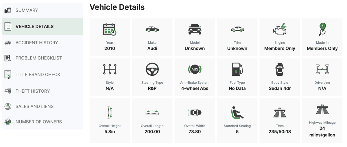 VINCheckUp also offers a basic free report, which includes limited information about the vehicle.